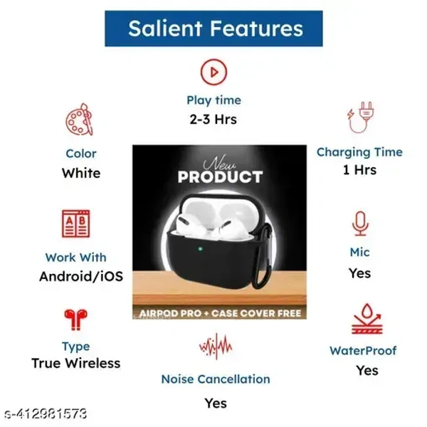 Enjoy up to 3 hours of playtime with these stylish, wireless AirPods Pro. Designed for comfort, perfect sound, and universal smartphone compatibility. Comes with a sleek silicone case for extra protection.