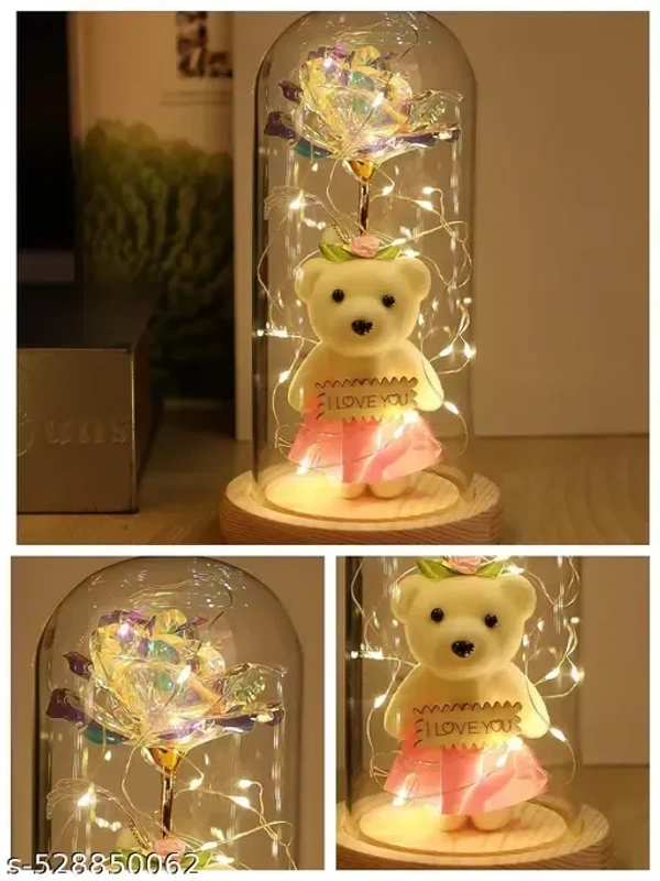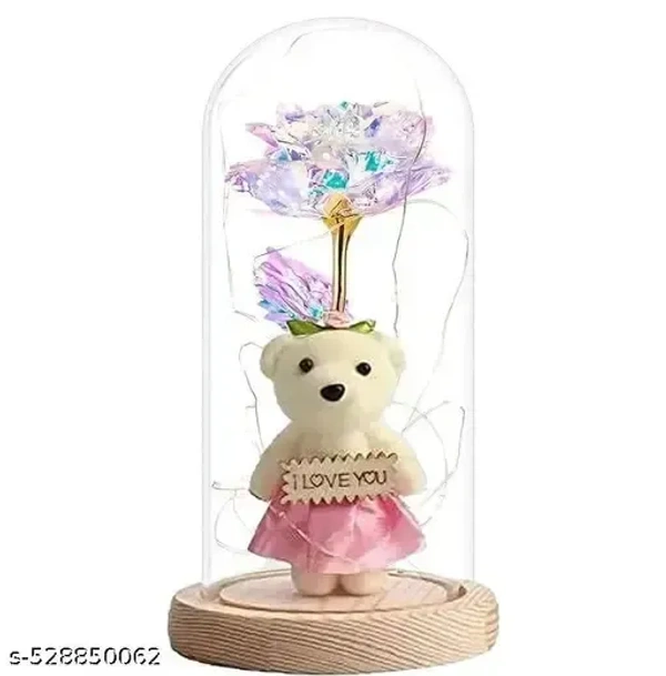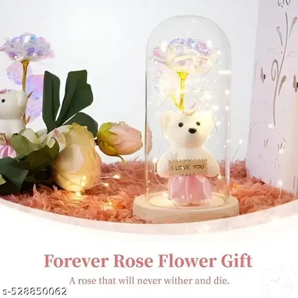 [Package Contents]-This galaxy rose flower gifts for women features a captivating galaxy design, combining vibrant colors and delicate petals to create a mesmerizing gift that symbolizes love and beauty. The package includes a glass cover with LED strings of roses and bears and a pink gift box with a heart pattern. The glass cover measures 8.67 x 4.33 inches. Note : 3 AAA batteries are not included in the gift boxes