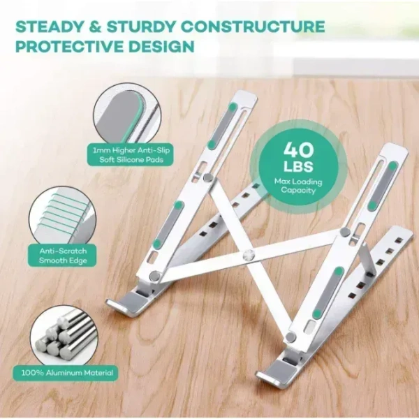 Multi-Angle Adjustable Design : The Aluminium Laptop Stand Or Metal Laptop Stand Or Foldable Laptop Stand Or Better Known As A Aluminum Laptop Stand Provides 6-Speed Adjustable Height, Adjust To Comfortable Operating Angle And Height Based On Your Actual Need. And The Ergonomic Design Makes For Easy Watching And Typing, Relieving Neck, Shoulder And Spinal Pain.
