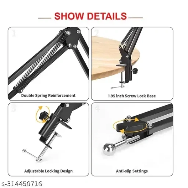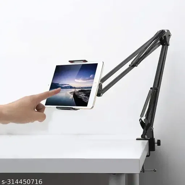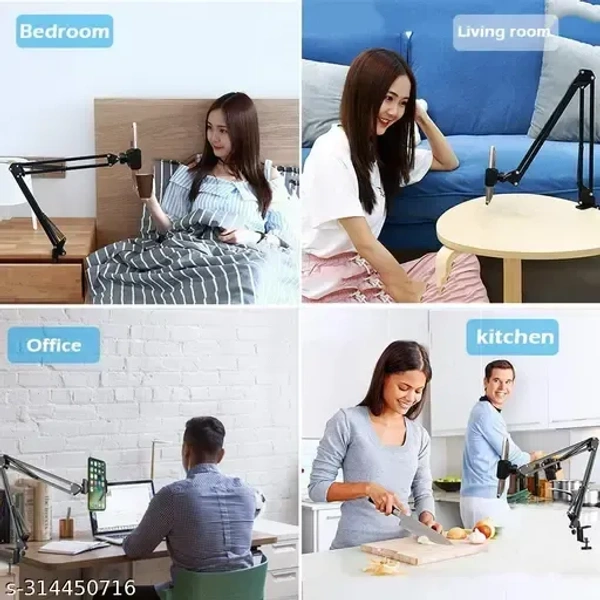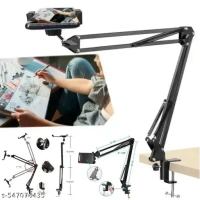 This mobile stand is made of Steel, which has a high level of quality, durability, and strength. By adjusting the lower base clamp to any edges, your can easily install it on any racks or edges of a Bed, Kitchen, Desktop Table, Office Table, and so on. The mobile mount and tablet mount brackets can be rotated 360 degrees to adjust the angle. Any mobile phone with a width of up to 3.1 inches or 8 cm and any tablet with a width of up to 21cm or 5.5 inches can be easily attached. Charge your phone or tablet while recording videos. Each joint has a 360-degree angle adjustment feature. Base Clamp- It can be mounted on any edge of the bed, study/drawing tables, kitchen racks, and other similar surfaces. The entire upper portion of the overhead tripod can be rotated 360 degrees horizontally from its axis. Tight and Lose Knob/Key - This tight and loose knob key is provided at each joint to allow your to adjust any angle of your video shooting needs.